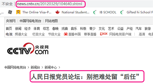 On 2 May 2012, the “People’s Daily” published an editorial entitled “Don’t back down before leaving office”. Publicly demanded current General Secretary Hu Jintao deal with the “Bo Xilai case” before the end of his term. |